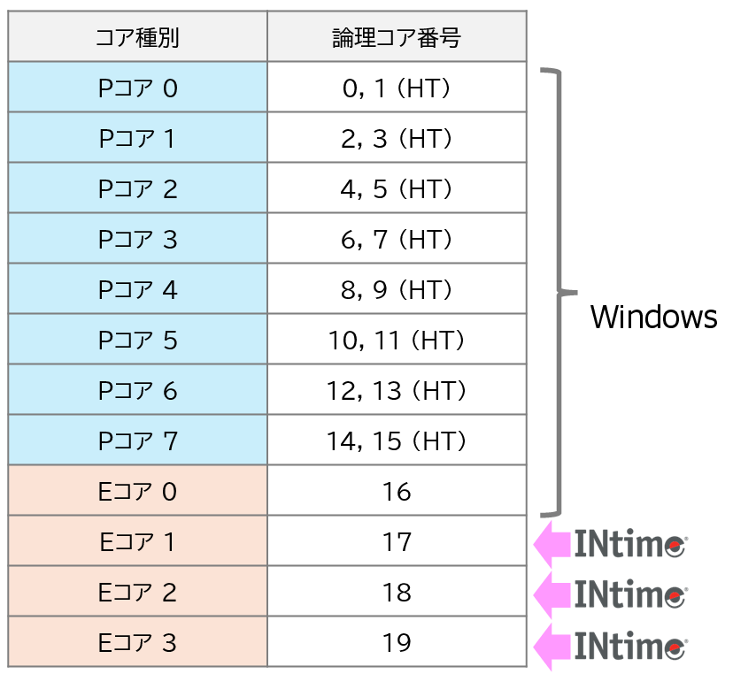 本ガイドラインでは、INtimeをPコア / Eコア搭載PC上で利用する際に留意すべき基本的な考え方や、CPUコアの割り当てに関する注意事項について説明します。