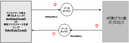 ② NT側グラフ表示プロセスはメールボックスにオブジェクトハンドルが着信後、そのハンドルをマップし、